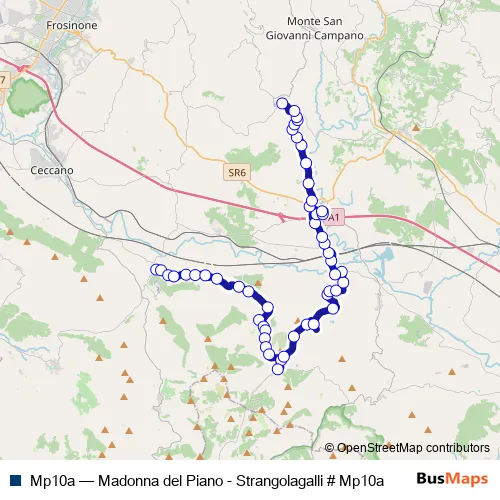 The first stop of the Mp10a bus route is Castro | Madonna del Piano # f5442 and the last stop is Strangolagalli | Via Roma # f5580. Mp10a (Madonna del Piano - Strangolagalli # Mp10a) is operational during on weekdays.