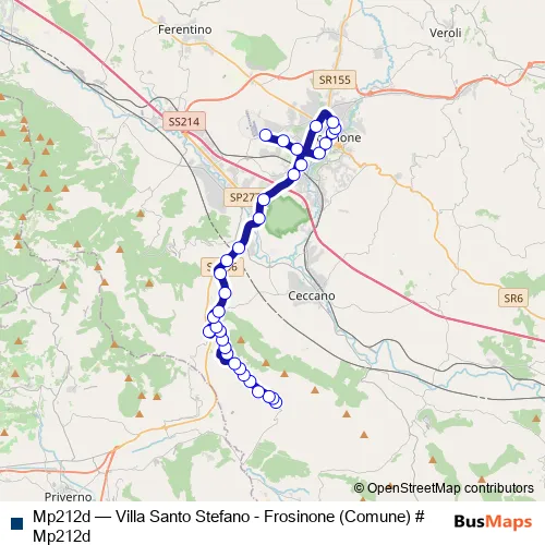 Services on the Mp212d - Villa Santo Stefano - Frosinone (Comune) # Mp212d bus start at 06:55 on Monday, Tuesday, Wednesday, Thursday, Friday.