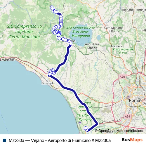 Bus Mz230a - Vejano - Aeroporto di Fiumicino # Mz230a: Full Schedule in Manziana
