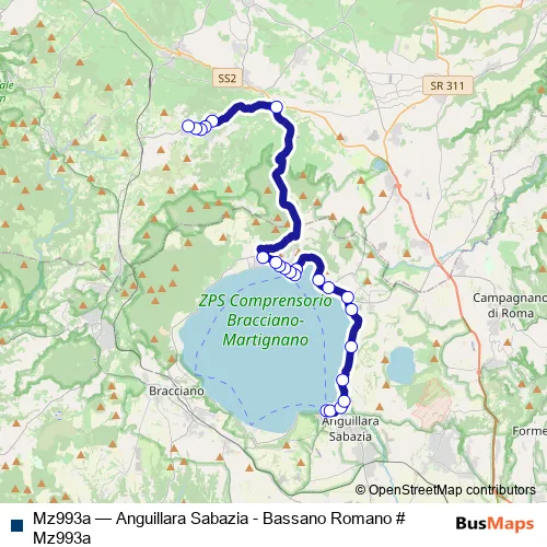 Click here to view the nearest Mz993a - Anguillara Sabazia - Bassano Romano # Mz993a bus stop.