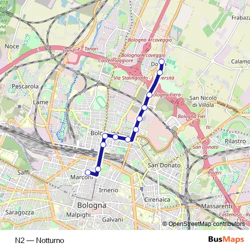 Bus N2 - Notturno: Full Schedule in Bologna