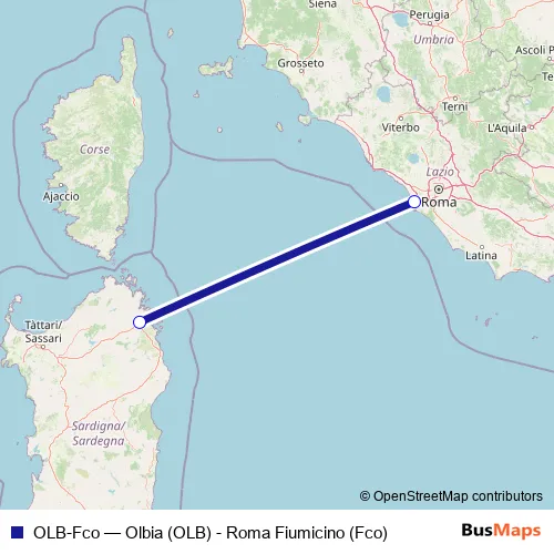 Click here to view the nearest OLB-Fco - Olbia (OLB) - Roma Fiumicino (Fco) air stop.