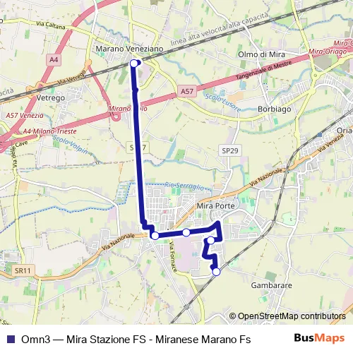 Click here to view the nearest Omn3 - Mira Stazione FS - Miranese Marano Fs bus stop.