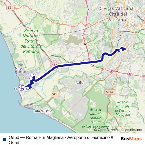 Bus Os5d - Roma Eur Magliana - Aeroporto di Fiumicino # Os5d Schedule in Fiumicino