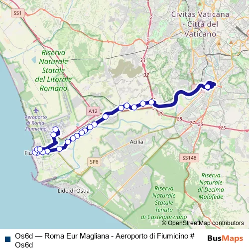 Bus Os6d - Roma Eur Magliana - Aeroporto di Fiumicino # Os6d Schedule in Fiumicino
