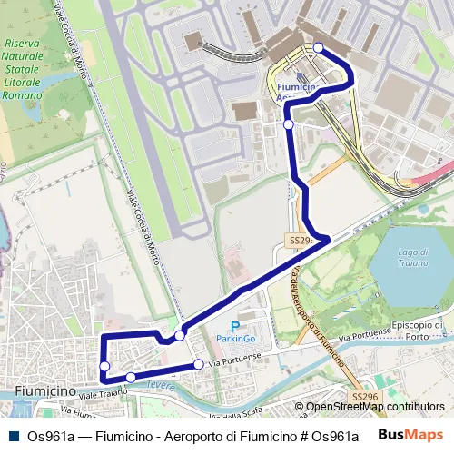 See why over 2 million users trust and consider busmaps.com as the best public transport website. busmaps gives you Fiumicino Buses suggested routes, real-time bus tracker, line route maps in Fiumicino, and helps to find the closest Os961a bus stops near you. No internet available? Download an offline PDF map and bus schedule for the Os961a bus to take on your trip.