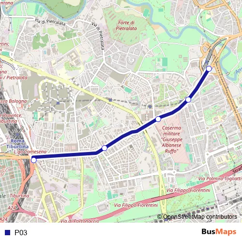 See why over 2 million users trust and consider busmaps.com as the best public transport website. busmaps gives you Rome Buses suggested routes, real-time bus tracker, line route maps in Rome, and helps to find the closest P03 bus stops near you. No internet available? Download an offline PDF map and bus schedule for the P03 bus to take on your trip.