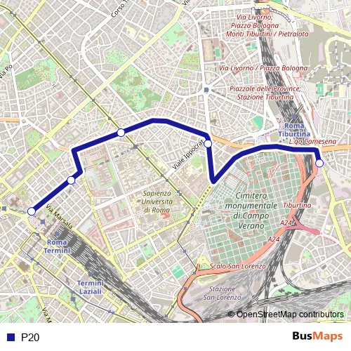 See why over 2 million users trust and consider busmaps.com as the best public transport website. busmaps gives you Rome Buses suggested routes, real-time bus tracker, line route maps in Rome, and helps to find the closest P20 bus stops near you. No internet available? Download an offline PDF map and bus schedule for the P20 bus to take on your trip.