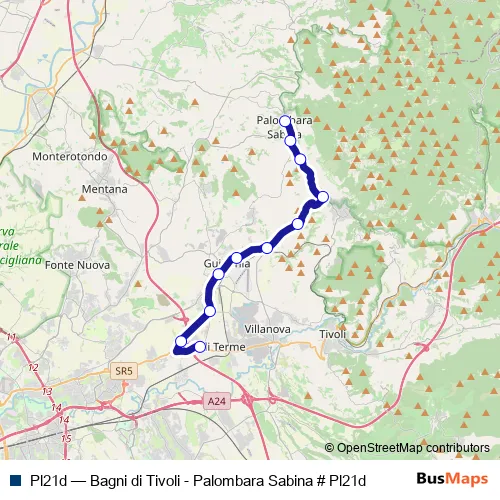 Bus Pl21d - Bagni di Tivoli - Palombara Sabina # Pl21d: Full Schedule in Palombara Sabina