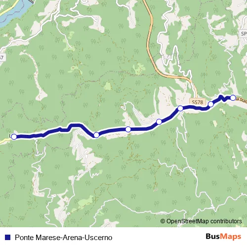 The first stop of the Ponte Marese-Arena-Uscerno bus route is Ponte Marese and the last stop is