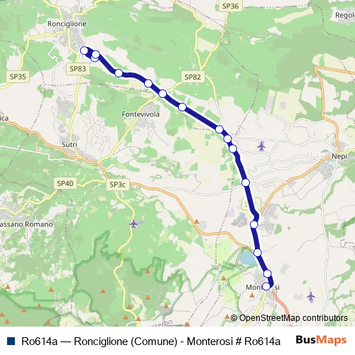 See why over 2 million users trust and consider busmaps.com as the best public transport website. busmaps gives you Ronciglione Buses suggested routes, real-time bus tracker, line route maps in Ronciglione, and helps to find the closest Ro614a bus stops near you. No internet available? Download an offline PDF map and bus schedule for the Ro614a bus to take on your trip.