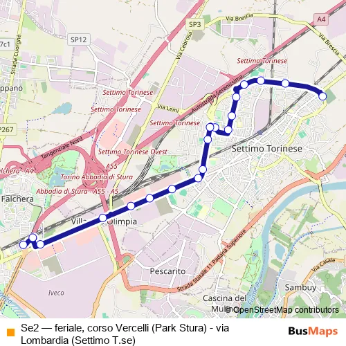 Bus Se2 - feriale, corso Vercelli (Park Stura) - via Lombardia (Settimo T.se) Schedule in Settimo Torinese