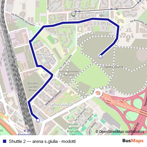 Click here to view the nearest Shuttle 2 - arena s.giulia - modotti bus stop.