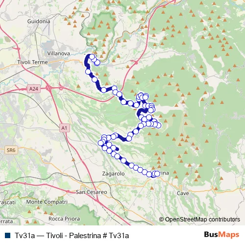 Click here to view the nearest Tv31a - Tivoli - Palestrina # Tv31a bus stop.