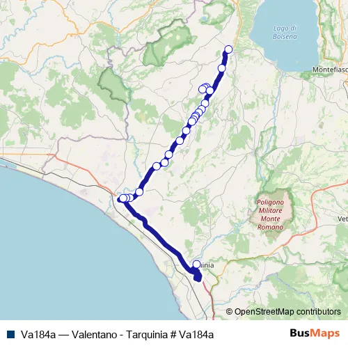 Services on the Va184a - Valentano - Tarquinia # Va184a bus start at 08:55 on Tuesday, Thursday, Friday, Saturday.