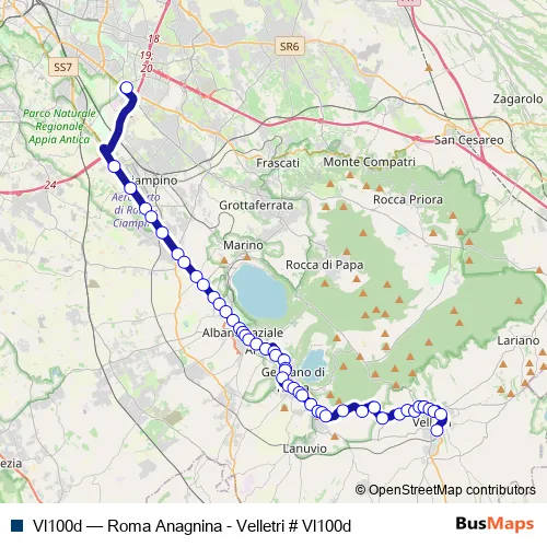 See why over 2 million users trust and consider busmaps.com as the best public transport website. busmaps gives you Velletri Buses suggested routes, real-time bus tracker, line route maps in Velletri, and helps to find the closest Vl100d bus stops near you. No internet available? Download an offline PDF map and bus schedule for the Vl100d bus to take on your trip.