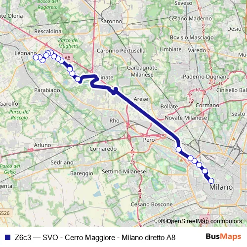 Click here to view the nearest Z6c3 - SVO - Cerro Maggiore - Milano diretto A8 bus stop.