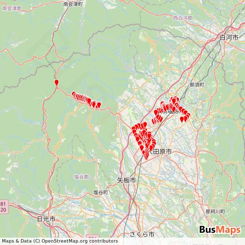 The nasushiobara GTFS feed by City-Nasushiobara provides structured public transit data for Japan, covering 21 routes and 219 stops operated by 1 transit agencies. Formatted in the General Transit Feed Specification (GTFS) standard, this dataset is ready for integration with transit apps, routing engines, and urban planning tools.