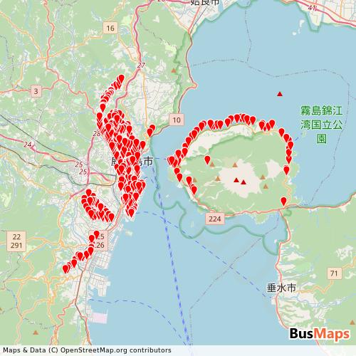 Transit map showing bus-kagoshimacity-kagoshima-jp-jpn routes and stops in Japan