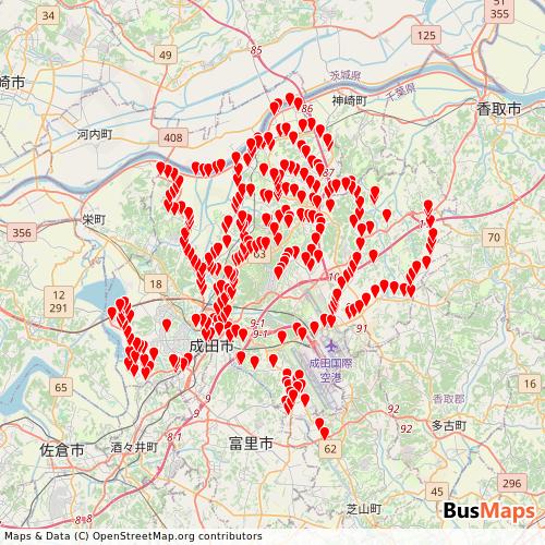 Transit map showing narita-community-bus routes and stops in Japan