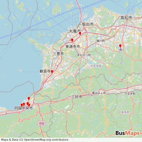 Transit map showing seisan-kanko-seisankanko-limousine routes and stops in Japan