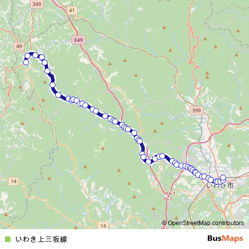 The first stop of the Iwaki Kamimisaka Line bus route is Kamimisaka and the last stop is Iwaki Station. Iwaki Kamimisaka Line is operational during everyday.