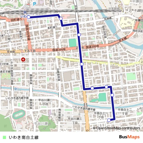 The first stop of the Iwaki Minami-Shirado Line bus route is Iwaki Station and the last stop is Minami-Shirado. Iwaki Minami-Shirado Line is operational during on weekdays.