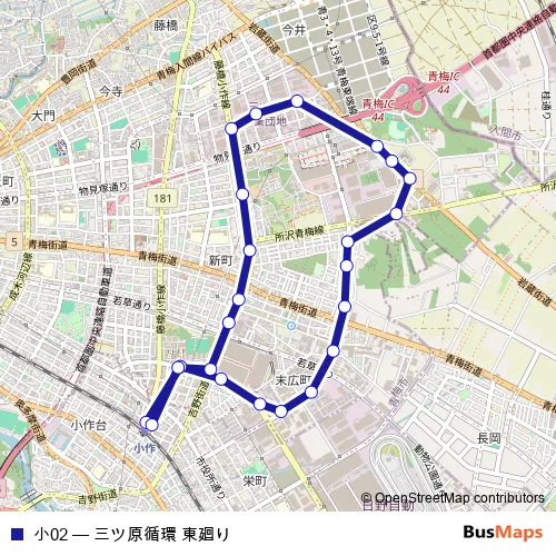 Bus 小02 - Mitsuhara Curculation Eastern Route in Hamura: Stops & Timetable