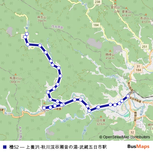 The first stop of the 檜52 bus route is Kamiyozawa and the last stop is Musashi-Itsukaichi Sta.. 檜52 (Kamiyozawa-Akigawa-keikoku Seotonoyu Hot Spring-Musashi-Itsukaichi Sta) is operational during everyday.