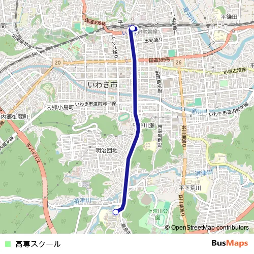 See why over 2 million users trust and consider busmaps.com as the best public transport website. busmaps gives you Iwaki Buses suggested routes, real-time bus tracker, line route maps in Iwaki, and helps to find the closest Kosen School bus stops near you. No internet available? Download an offline PDF map and bus schedule for the Kosen School bus to take on your trip.