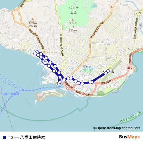 Click here to view the nearest 13 - 八重山病院線 bus stop.