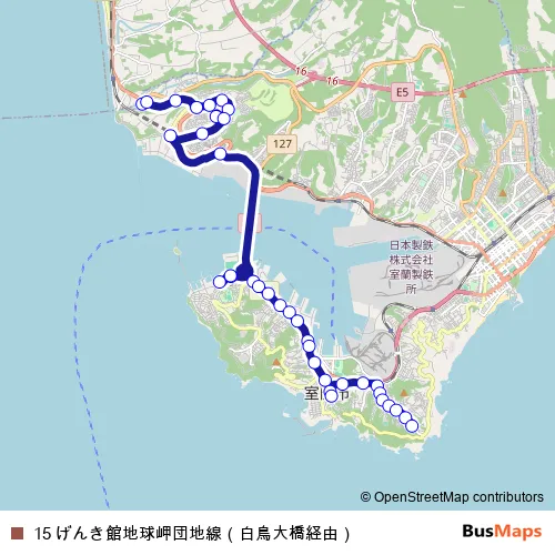 Bus 15 げんき館地球岬団地線(白鳥大橋経由): Full Schedule in Muroran