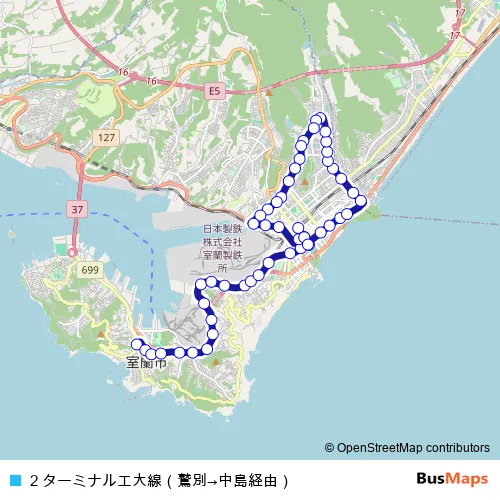 Bus 2 ターミナル工大線(鷲別→中島経由) in Muroran: Stops & Timetable