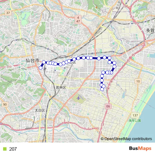 See why over 2 million users trust and consider busmaps.com as the best public transport website. busmaps gives you Sendai Buses suggested routes, real-time bus tracker, line route maps in Sendai, and helps to find the closest 207 bus stops near you. No internet available? Download an offline PDF map and bus schedule for the 207 bus to take on your trip.
