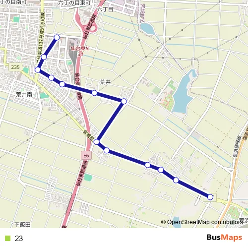 See why over 2 million users trust and consider busmaps.com as the best public transport website. busmaps gives you Sendai Buses suggested routes, real-time bus tracker, line route maps in Sendai, and helps to find the closest 23 bus stops near you. No internet available? Download an offline PDF map and bus schedule for the 23 bus to take on your trip.