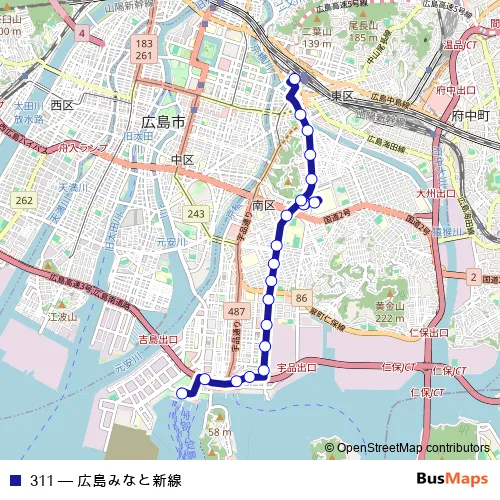 Bus 311 - 広島みなと新線 in Hiroshima: Stops & Timetable