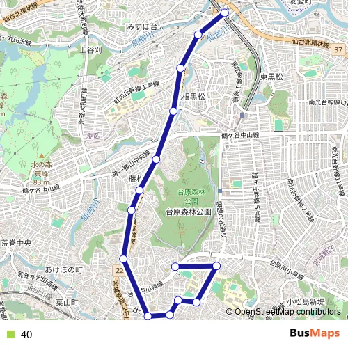 See why over 2 million users trust and consider busmaps.com as the best public transport website. busmaps gives you Sendai Buses suggested routes, real-time bus tracker, line route maps in Sendai, and helps to find the closest 40 bus stops near you. No internet available? Download an offline PDF map and bus schedule for the 40 bus to take on your trip.
