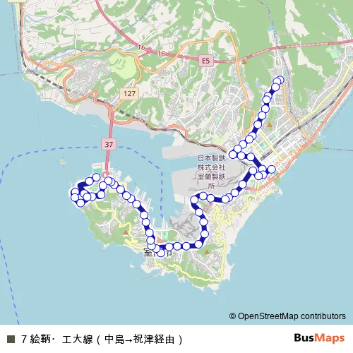 Bus 7 絵鞆・工大線(中島→祝津経由): Full Schedule in Muroran