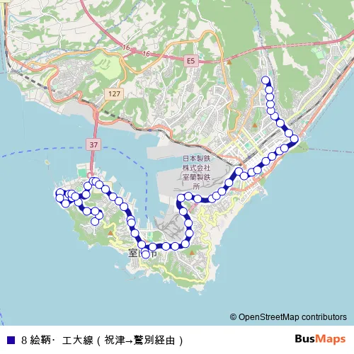 Bus 8 絵鞆・工大線(祝津→鷲別経由): Full Schedule in Muroran