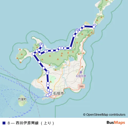 See why over 2 million users trust and consider busmaps.com as the best public transport website. busmaps gives you Ishigaki Buses suggested routes, real-time bus tracker, line route maps in Ishigaki, and helps to find the closest 8 bus stops near you. No internet available? Download an offline PDF map and bus schedule for the 8 bus to take on your trip.