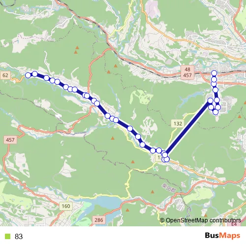The first stop of the 83 bus route is Kaminohara and the last stop is Ayashi Eki (Ayashi Station). 83 is operational during everyday.