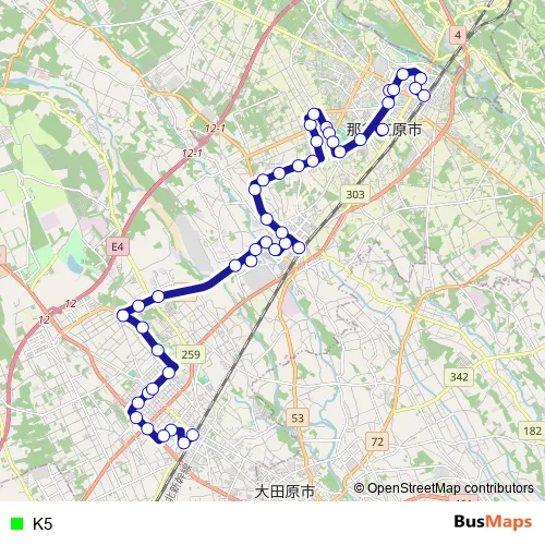 See why over 2 million users trust and consider busmaps.com as the best public transport website. busmaps gives you Nasushiobara Buses suggested routes, real-time bus tracker, line route maps in Nasushiobara, and helps to find the closest K5 bus stops near you. No internet available? Download an offline PDF map and bus schedule for the K5 bus to take on your trip.