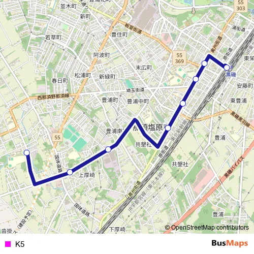 See why over 2 million users trust and consider busmaps.com as the best public transport website. busmaps gives you Nasushiobara Buses suggested routes, real-time bus tracker, line route maps in Nasushiobara, and helps to find the closest K5 bus stops near you. No internet available? Download an offline PDF map and bus schedule for the K5 bus to take on your trip.
