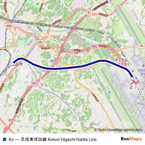 The first stop of the Ks rail route is Keisei-Narita and the last stop is Higashi-Narita. Ks (Keisei Higashi-Narita Line) is operational during everyday.