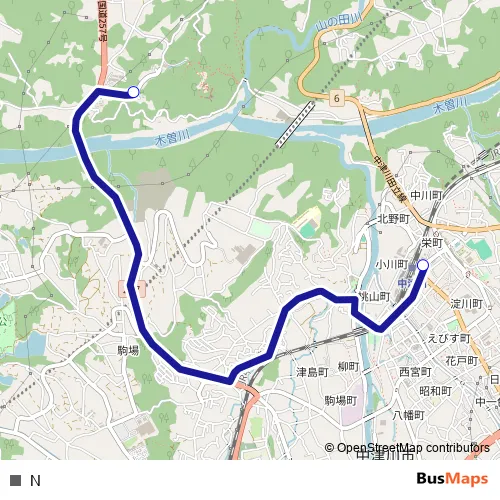 The first stop of the N bus route is Nakatsugawa Eki-mae(Nakatsugawa Sta.) and the last stop is Naegijo(Naegi Castle). N is operational during on weekends.