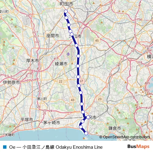 The first stop of the Oe rail route is Sagami-Ono and the last stop is Katase-Enoshima. Oe (Odakyu Enoshima Line) is operational during everyday.