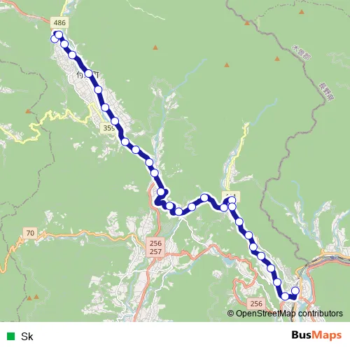The first stop of the Sk bus route is Tsukechikyo Kuraya Onsen and the last stop is Sakashita Eki-mae(Sakashita Sta.). Sk is operational during everyday.