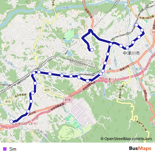 The first stop of the Sm bus route is Tohtetsu Enasyako and the last stop is Nakatsugawa Eki-mae(Nakatsugawa Sta.). Sm is operational during everyday.