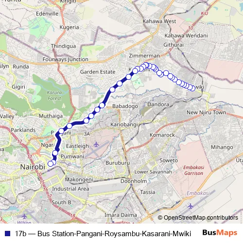 Bus 17b - Bus Station-Pangani-Roysambu-Kasarani-Mwiki in Nairobi: Stops & Timetable