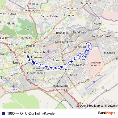 See why over 2 million users trust and consider busmaps.com as the best public transport website. busmaps gives you Nairobi Buses suggested routes, real-time bus tracker, line route maps in Nairobi, and helps to find the closest 1960 bus stops near you. No internet available? Download an offline PDF map and bus schedule for the 1960 bus to take on your trip.